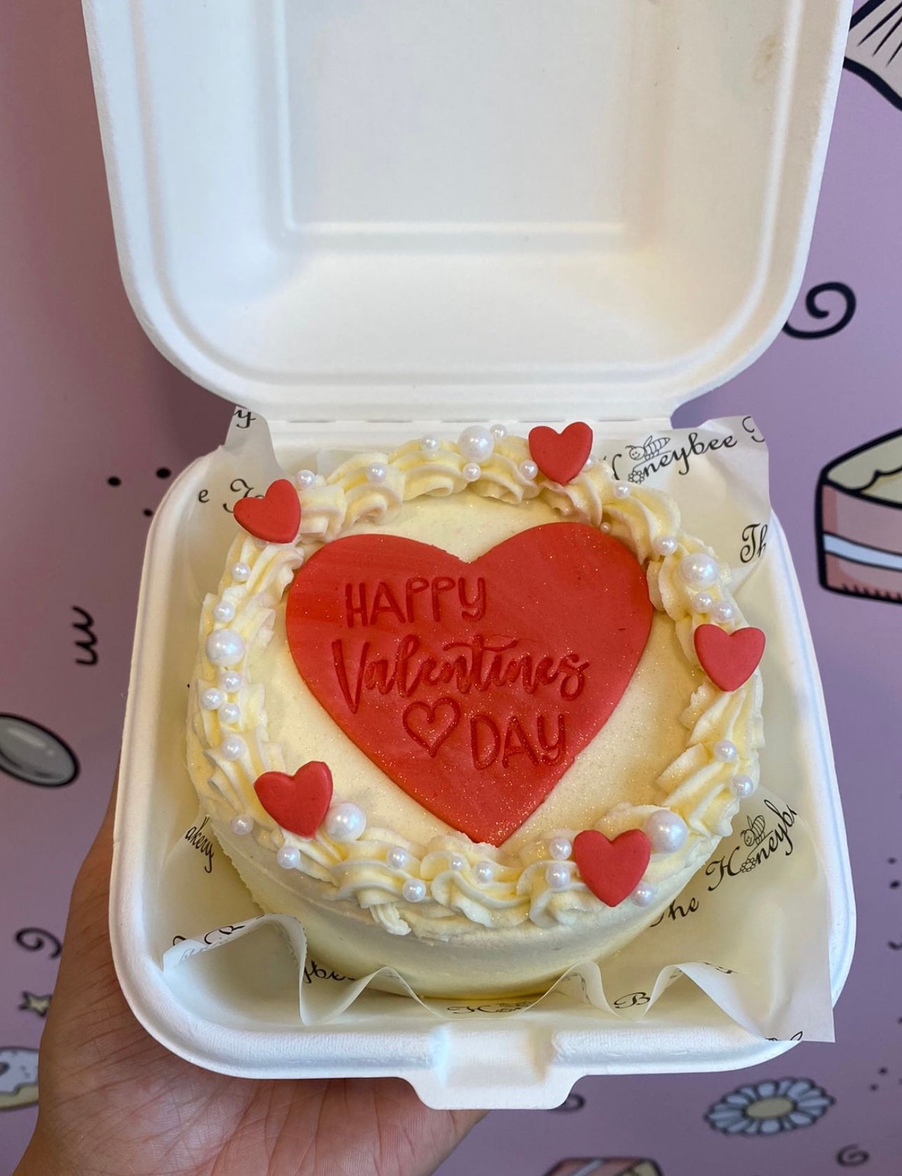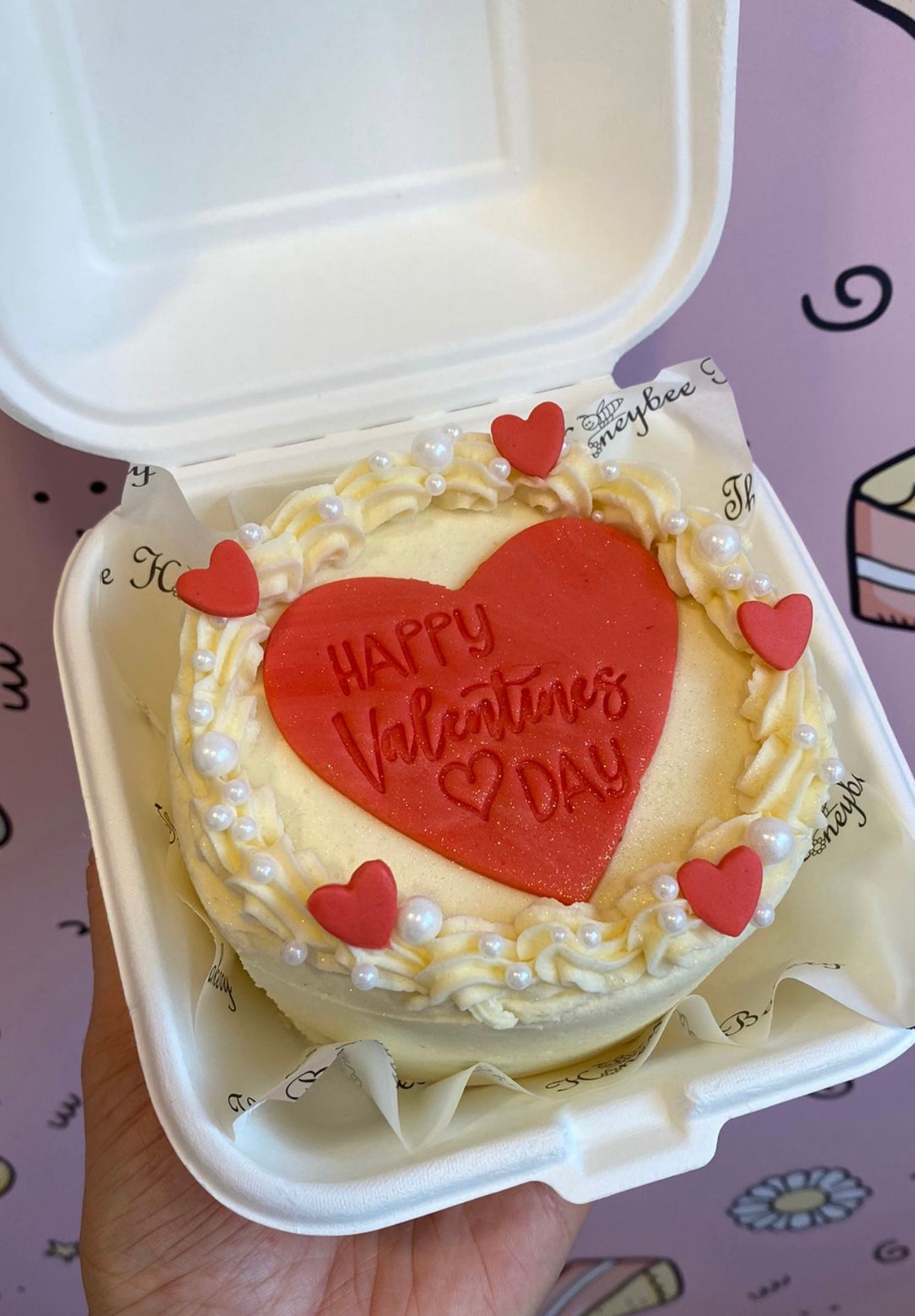 4” victoria sponge cake with raspberry jam and filled with vanilla buttercream. Personalised message and colour scheme.